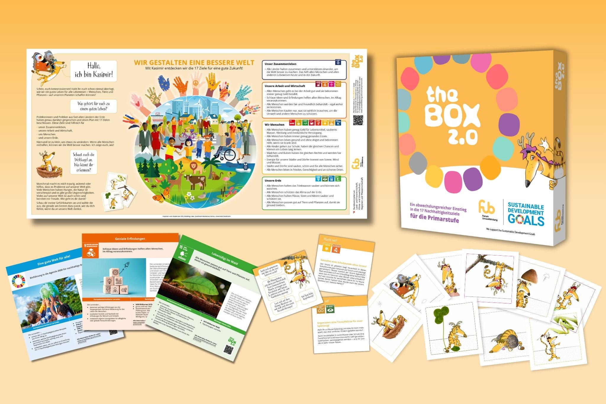Die 17 Nachhaltigkeitsziele der Vereinten Nationen (SDGs) umfassen soziale, ökonomische, ökologische und politische Themen. Ihr Ziel ist eine Transformation der Welt, sodass alle Menschen – jetzt und in der Zukunft – gut leben können. Deshalb wurde the BOX 2.0 entwickelt, um einen abwechslungsreichen Einstieg in die 17 Nachhaltigkeitsziele zu ermöglichen. Durch vielfältige Ideenfindungsprozesse und spielerische Zugänge fördern die Methoden von the BOX 2.0 wesentliche überfachliche Kompetenzen, die für diesen Wandel nötig sind, wie Zusammenarbeit, Kreativität, Perspektivenwechsel und die aktive Auseinandersetzung mit Themen einer gerechteren und nachhaltigeren Zukunft. So erweitern die Lernenden ihr Repertoire nachhaltiger Handlungsmöglichkeiten.